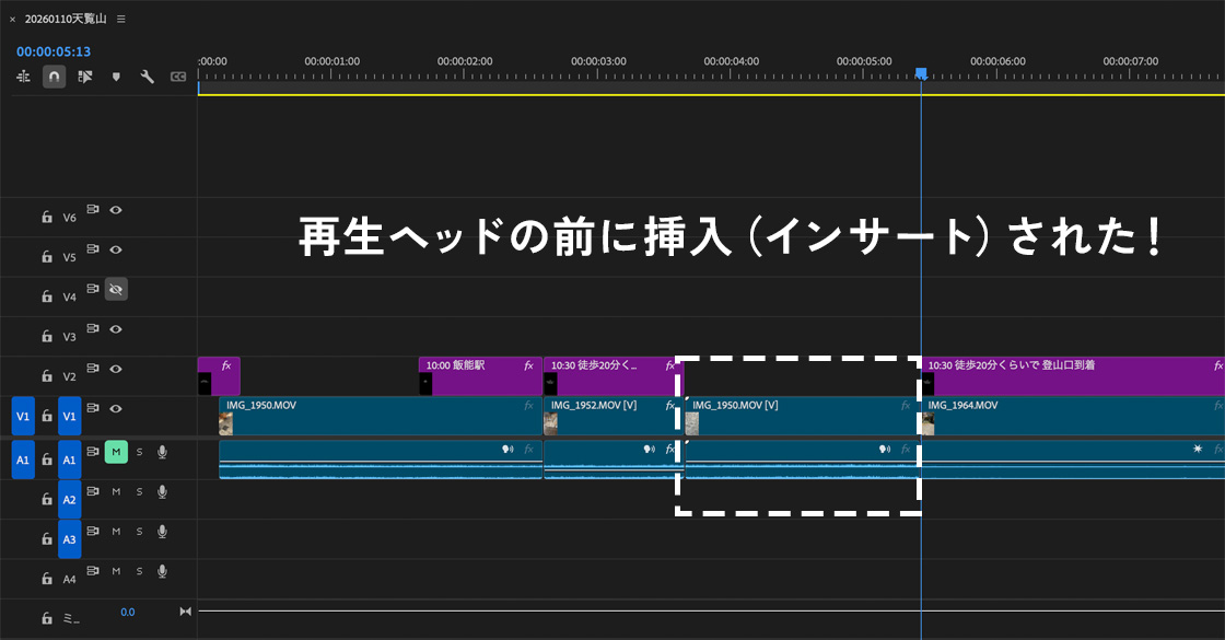 これを覚えないと、挿入したいときに全てのクリップを移動させる手間が生じるので、
