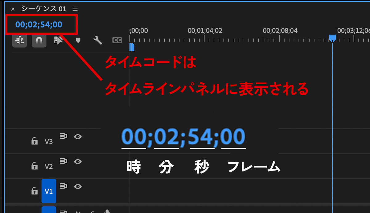タイムコード上で数値を入力し、時間やフレームを指定すると、再生ヘッドがその指定された位置に。