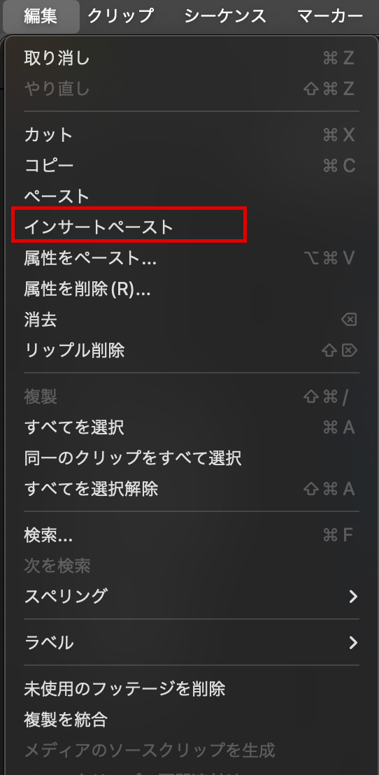 挿入したいクリップをコピー(⌘C)して