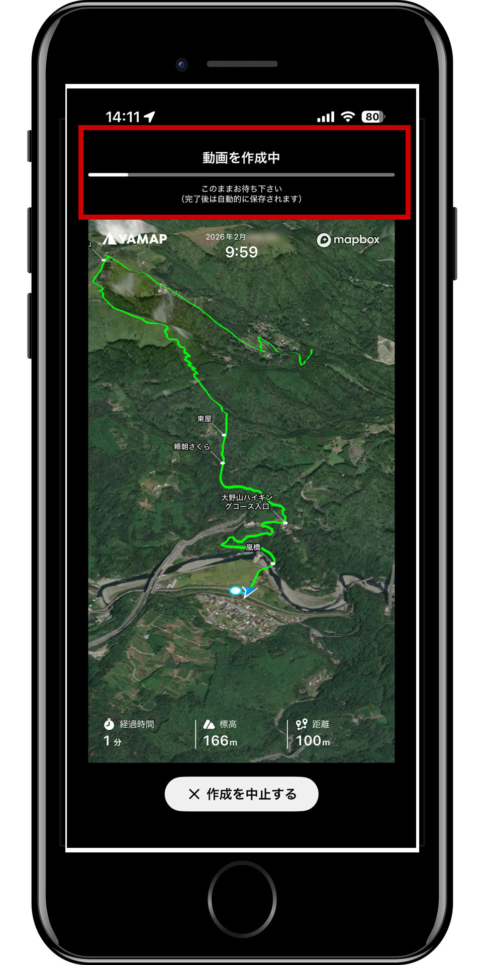 YAMAPの軌跡と地図を動画(mp4)に保存する方法