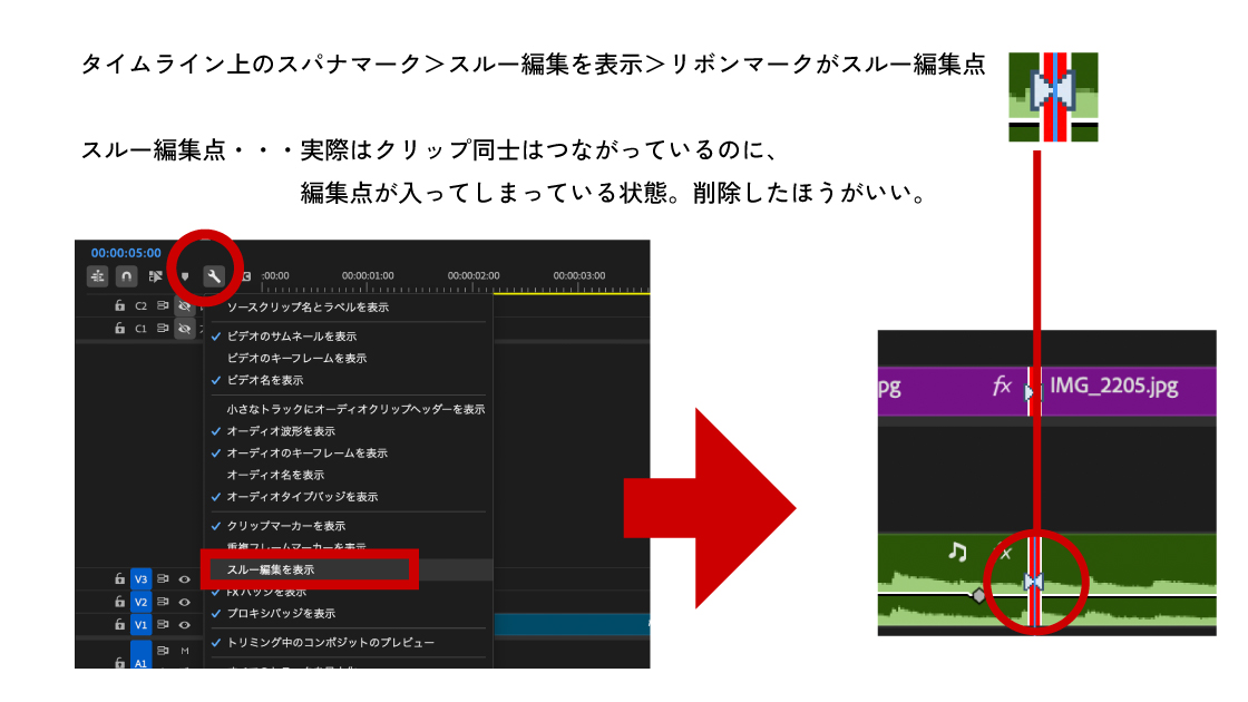 不要な(勝手にできてしまった)編集点はのことをスルー編集点といいます。