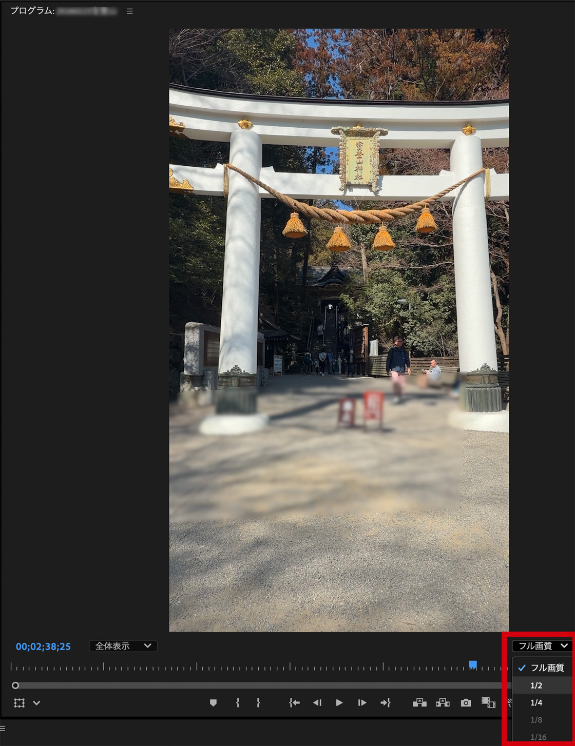 フル画質で作業せず、1/2や1/4に設定して作業しましょう。