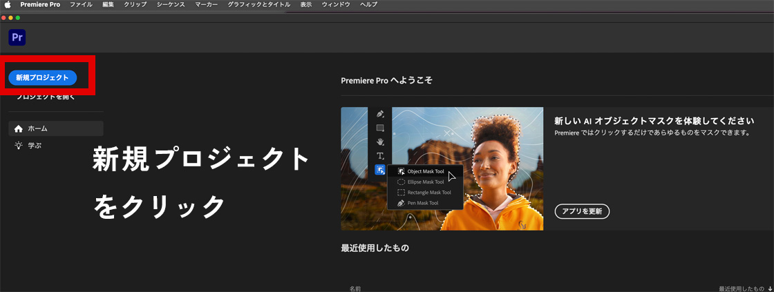 1. PremierePro>新規プロジェクトをクリックします。
