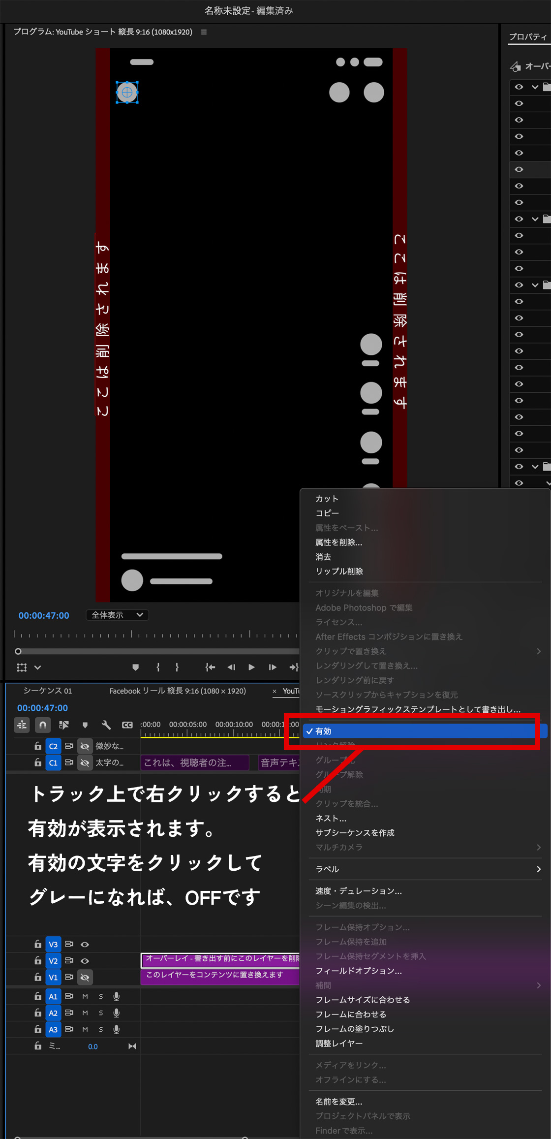 3. 有効をOFFに切り替える→トラックを右クリックして有効を切り替えるぶ